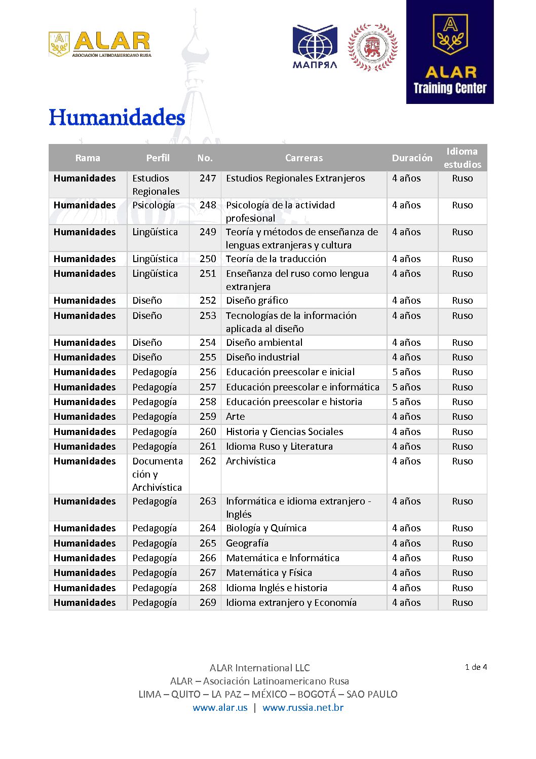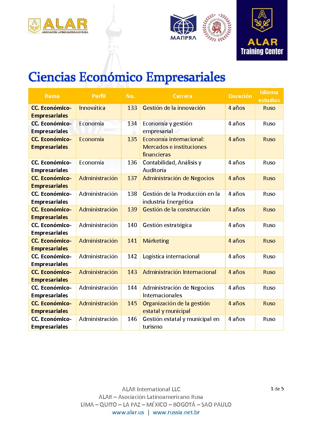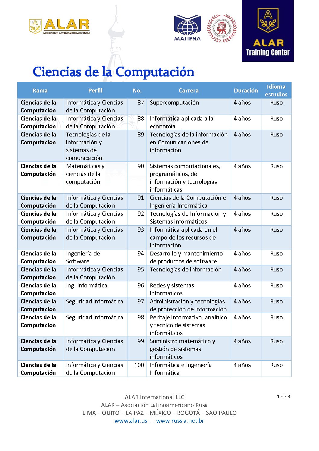 Estas son las carreras que Rusia ofrece: