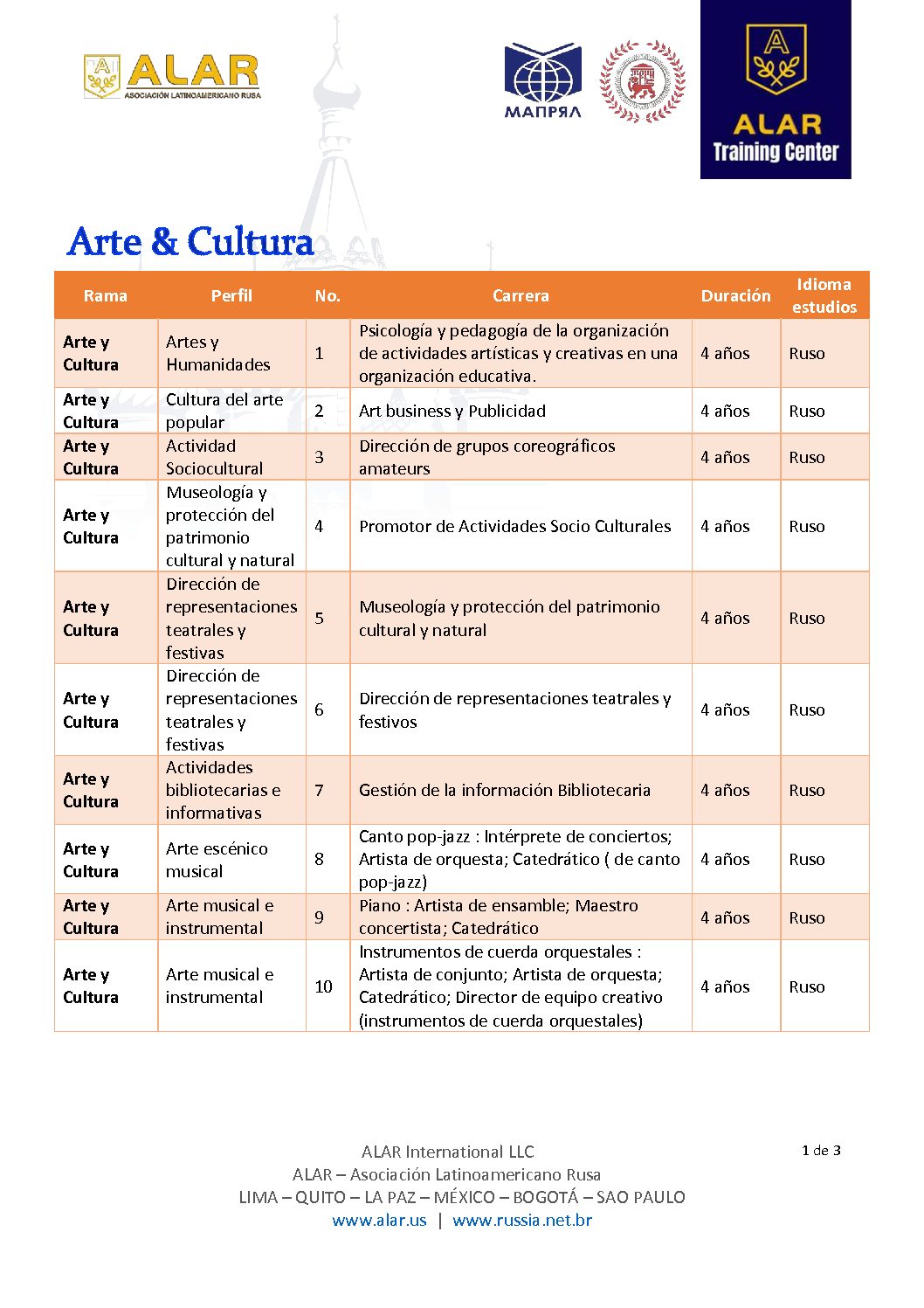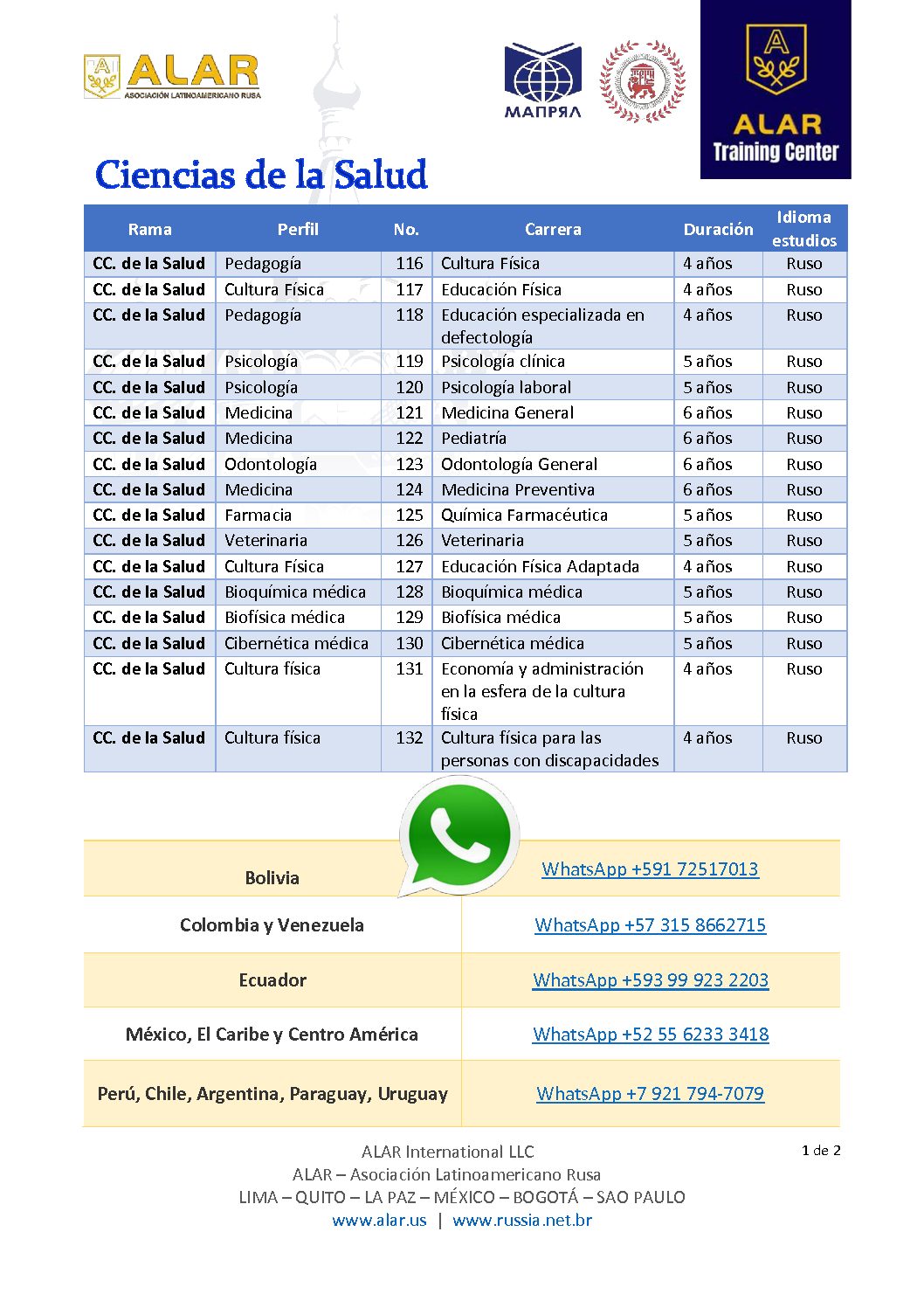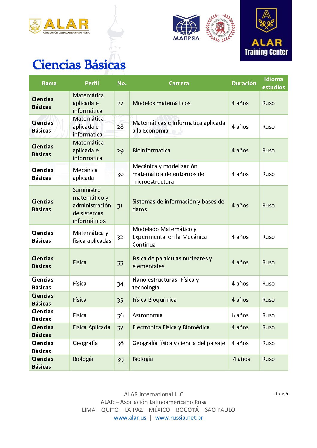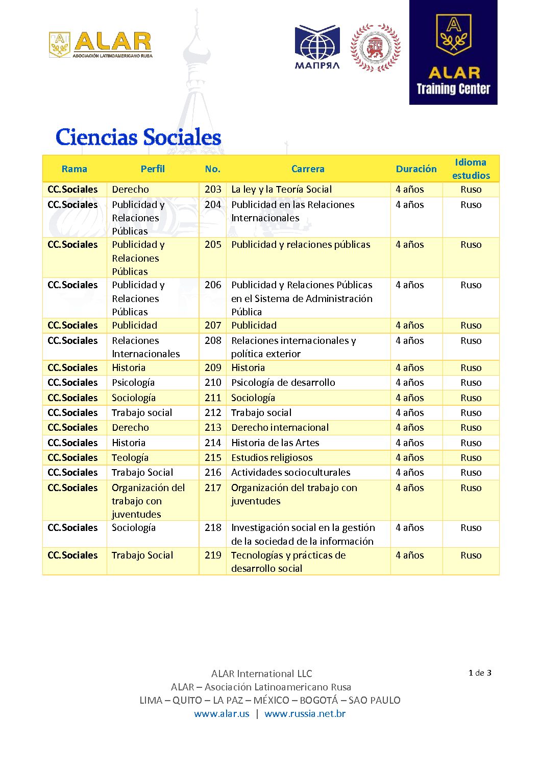 Estas son las carreras que Rusia ofrece: