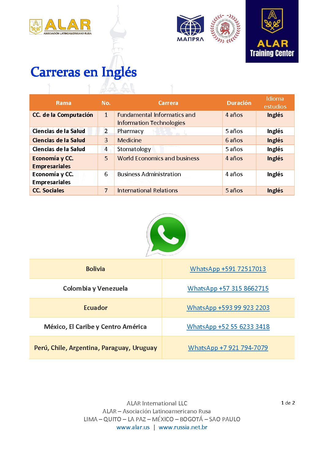 - CARRERAS EN INGLÉS