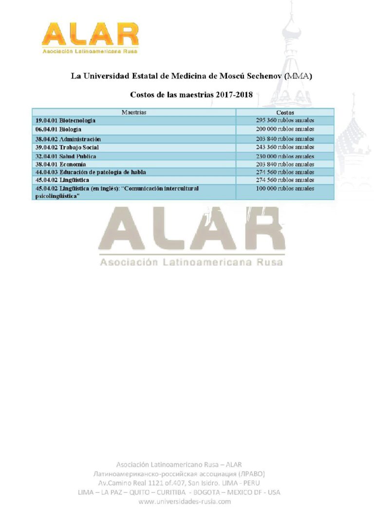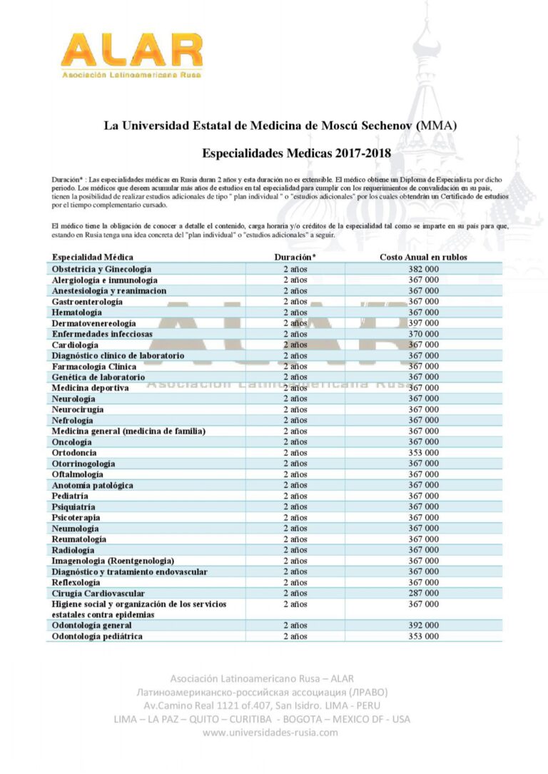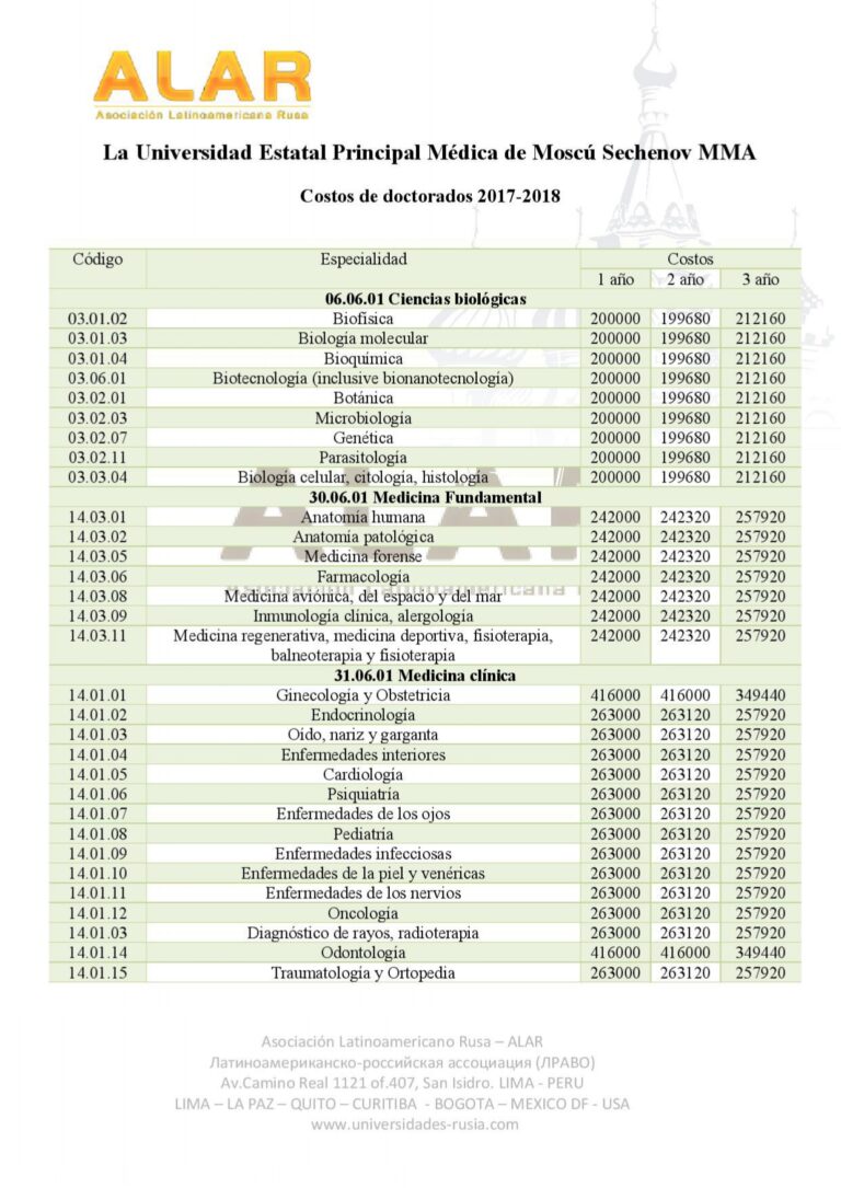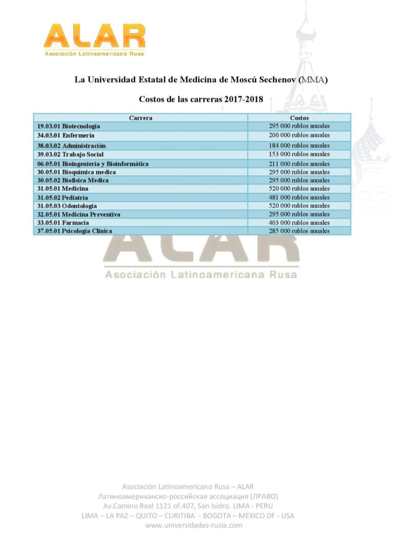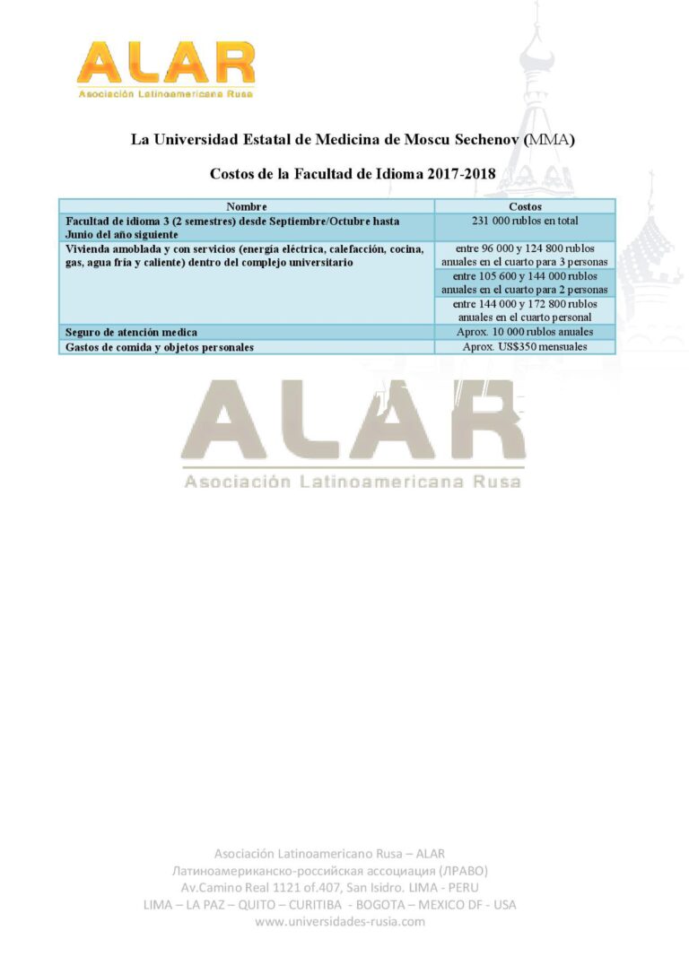 Se presentan los Costos en dolares y rublos para el Año Académico 2017-2018. Para ver los costos en su moneda local le recomendamos usar el conversor: http://www.xe.com/es Usted debe elegir la divisa : RUB – Rublo ruso y convertirla a su moneda local : USD – Dólar estadounidense, MXN – Peso mexicano, COP – Peso colombiano, PEN – Sol peruano, BOB – Boliviano de Bolivia u otro.